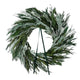 Our 22" Holiday green wreath smells so fragrant with the combination of preserved natural cedar. Designed with preserved fragrant cedar and natural preserved silver dollar leaves with a linen ribbon accent and pinecones.