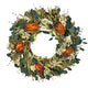 Our Lavender in the Mist wreath is designed with natural white sinuata blooms, English Lavender, lavender larkspur stems, preserved green silver leaves and purple globe amaranth.