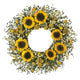 Twiggy wispy base with green leaves, deep fushia globe amaranthus, white daisies, pink strawflowers, bundles of English Lavender with green hydrangea and soft sage green eucalyptus stems.
