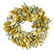 Our Sunny Garden Wreath is filled wtih natural sage green integrifolia leaves, golden yellow phalairs,natural flax pods,white daisies, billy buttons and ivory strawflowers.