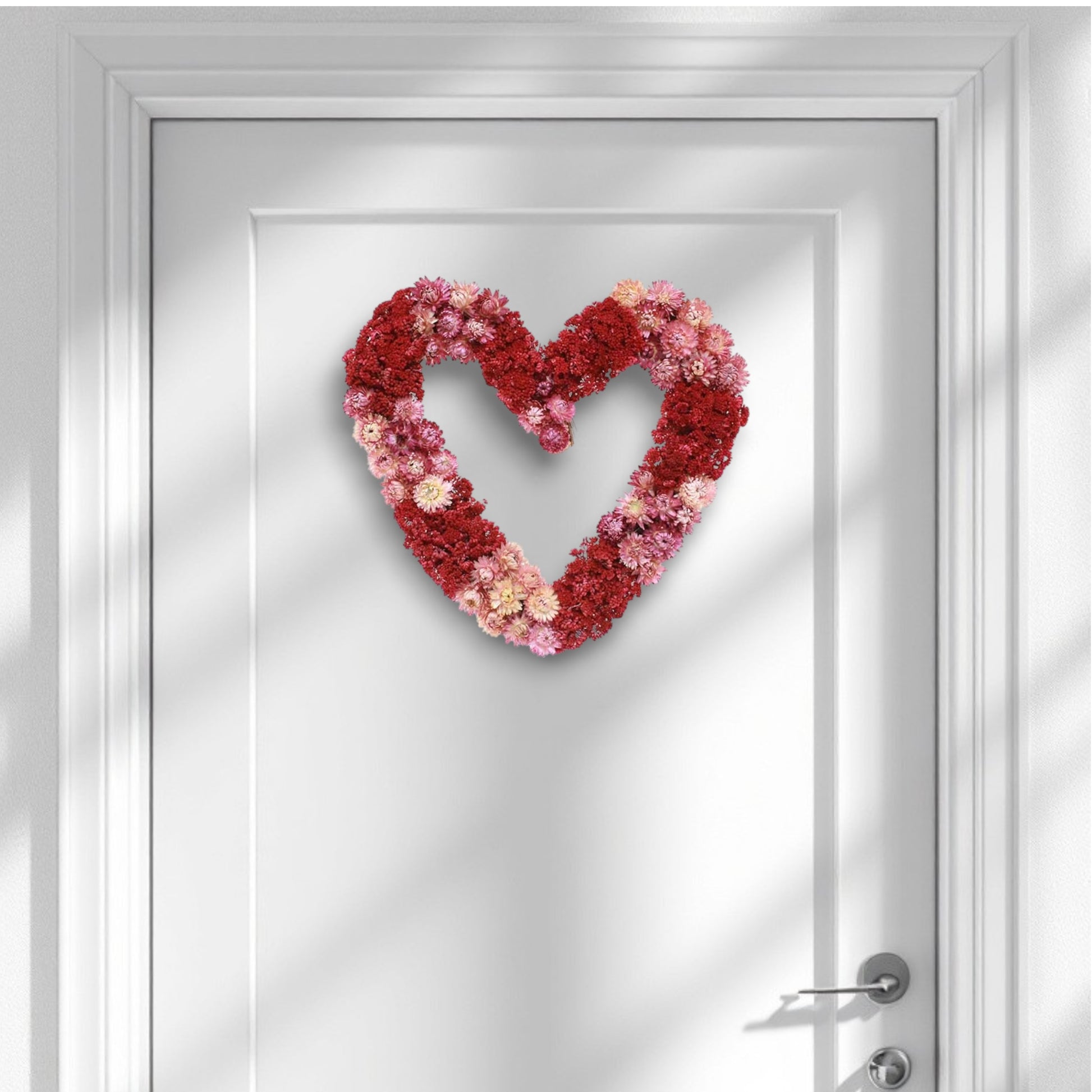 Our Juliet's Heart is designed with raspberry yarrow and assorted strawflowers in pink and fushia colors. Each one is handmade and no two are alike.