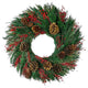 22" Traditional Holiday Greenery Wreath – Designed with preserved myrtle, fragrant cedar, eucalyptus leaves, red flax pods, and snow-tipped pinecones, finished with a red linen bow.